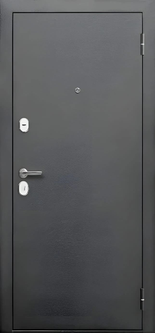 - Фурнитура и комфорт: Лаконичные раздельные ручки в цвете «хром», встроенная ночная задвижка и панорамный глазок. Две навесные петли с закрытыми подшипниками обеспечивают легкое открывание без скрипа.