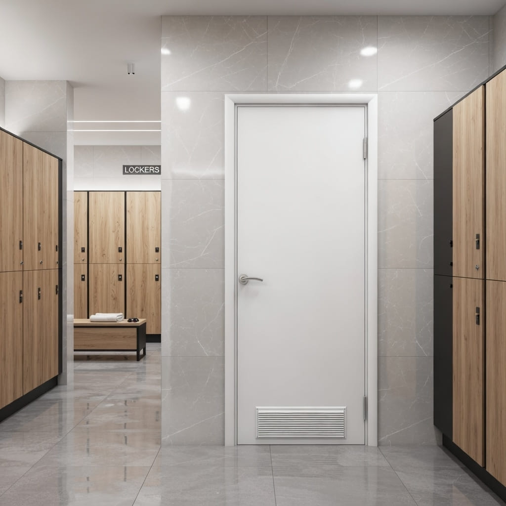 Такие двери идеально подойдут для специализированных и общественных объектов с высокой проходимостью и повышенными санитарными требованиями.