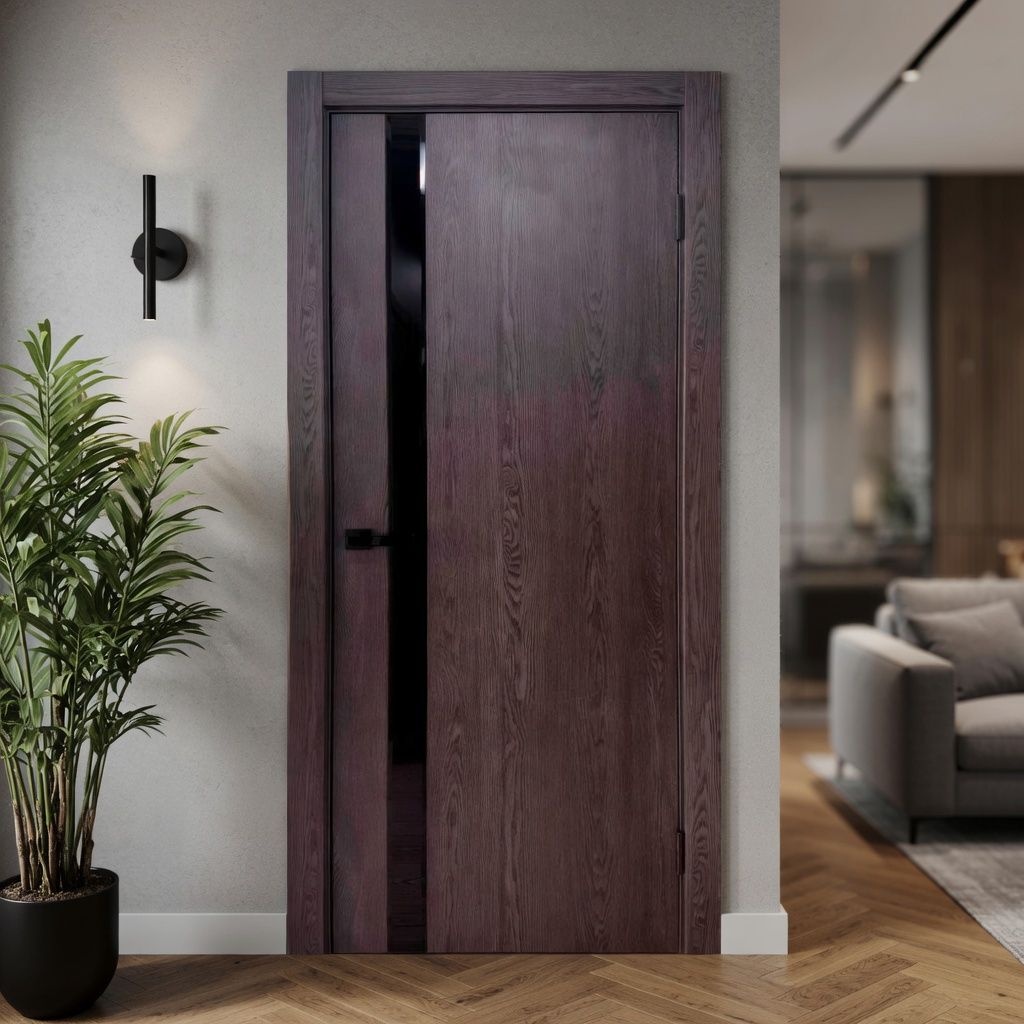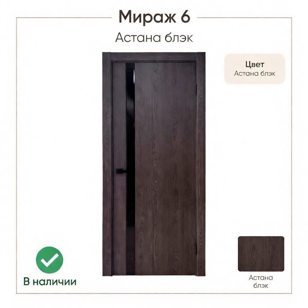 Межкомнатная дверь Мираж 6 Астана блэк — стильная остекленная модель в насыщенном темном декоре с роскошным черным стеклом, идеально подходящая для современных интерьеров в стиле лофт, хай-тек и минимализм. Полностью черная композиция создаёт мощный визуальный акцент и подчёркивает характер пространства.