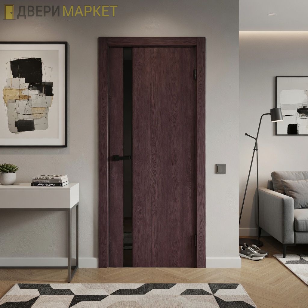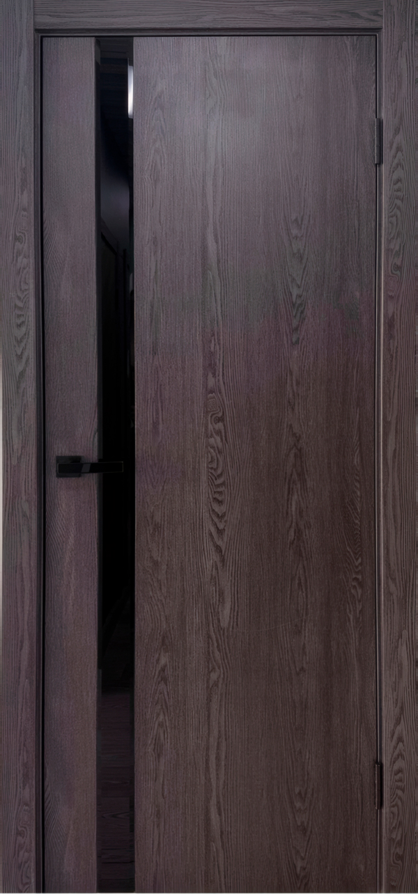 Продольная пластиковая черная кромка по периметру полотна обеспечивает надёжную защиту торцов от сколов и механических повреждений, а также создаёт монолитный графичный образ двери. Черная кромка гармонично сочетается с темным полотном и черным стеклом, подчёркивая современный характер модели.