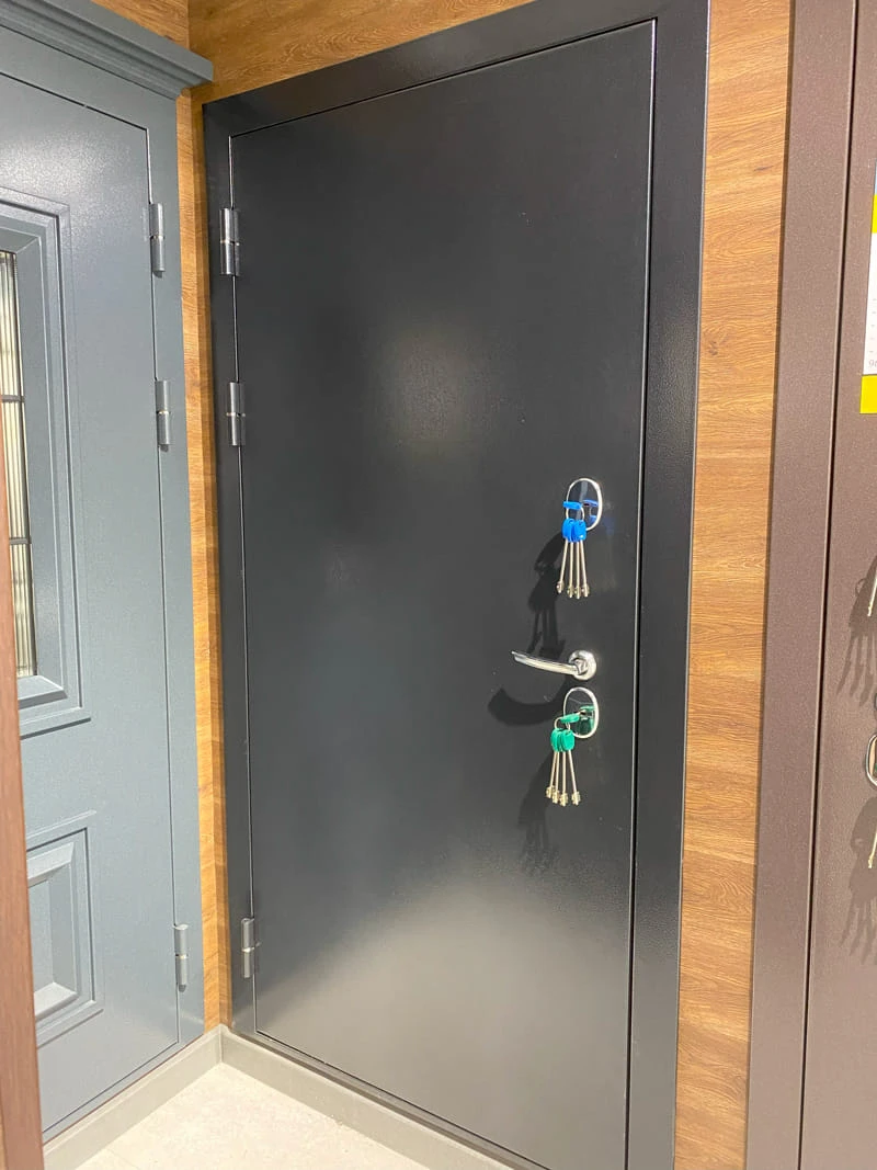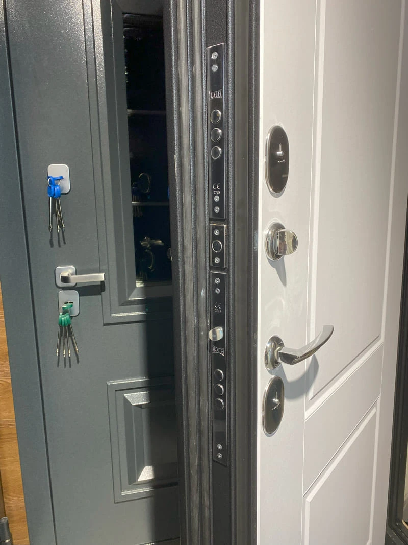 Конструкция двери включает в себя три петли для внешнего открывания на 180 градусов, что обеспечивает удобство использования. Основной и дополнительный замки Kale сувальдного типа с ригелями 16 мм обеспечивают высокий уровень безопасности.