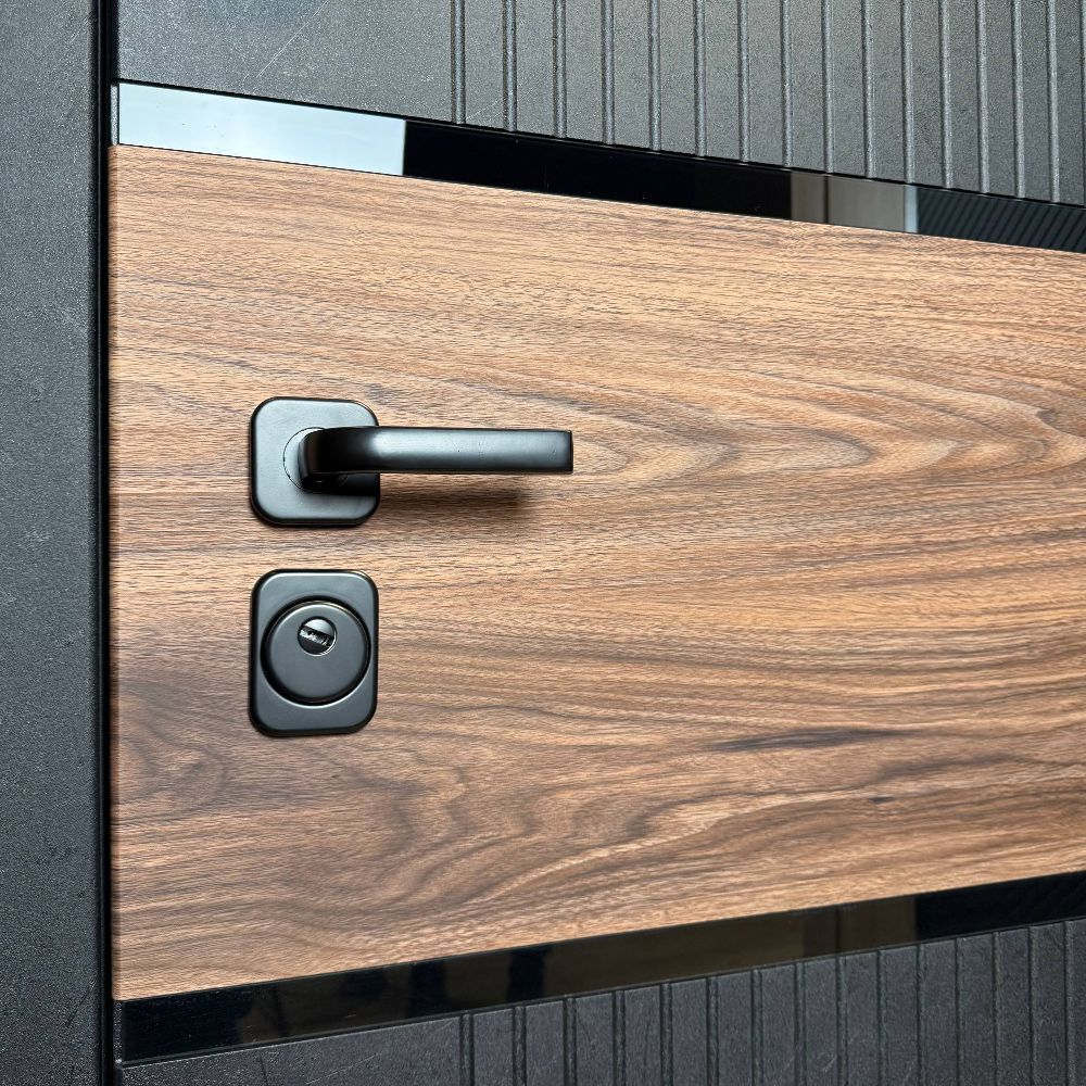 - Защита от взлома: За безопасность отвечают два надежных замка (основной цилиндровый и дополнительный сувальдный). Со стороны петель конструкцию страхуют 3 массивных металлических противосъемных штыря.