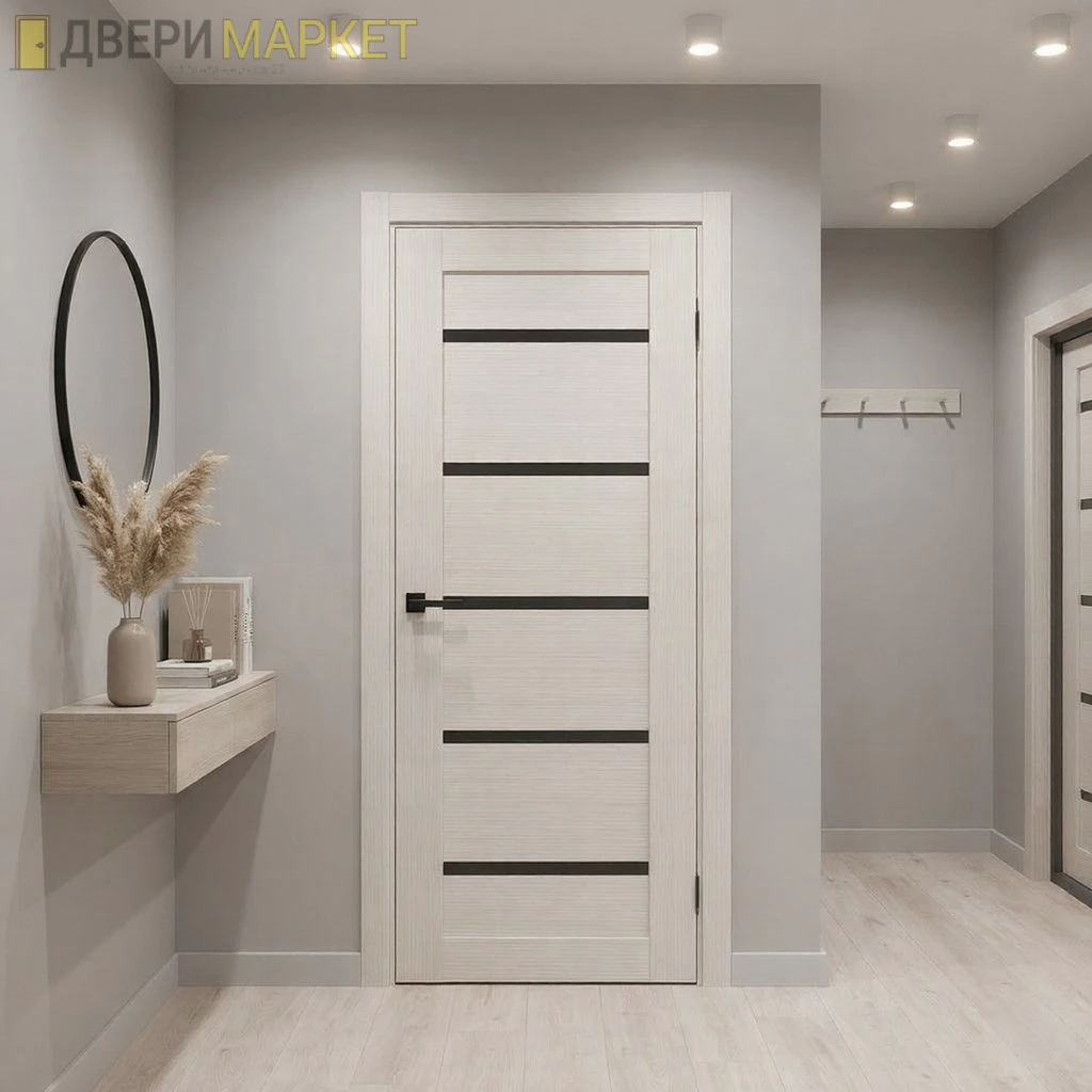 Благодаря своему современному дизайну и использованию черного стекла, эта дверь будет гармонично смотреться в любом интерьере. Кроме того, экошпон, используемый в качестве покрытия, является экологически чистым материалом, безопасным для здоровья.