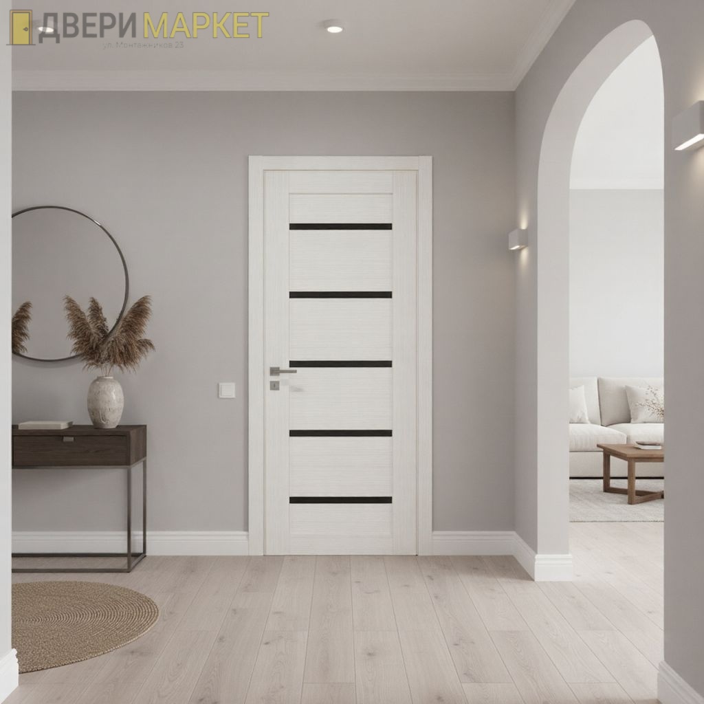 Межкомнатная дверь Vida-1 с покрытием из экошпона (Эшвайт/черное стекло) – это стильное и практичное решение для вашего дома. Она изготовлена из качественных материалов и обеспечивает хорошую звукоизоляцию, что делает ее идеальным выбором для любого помещения.