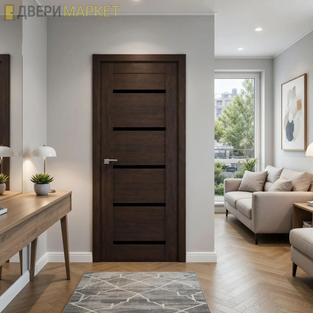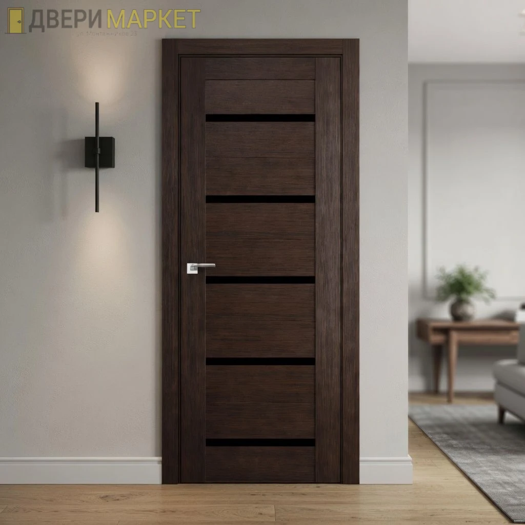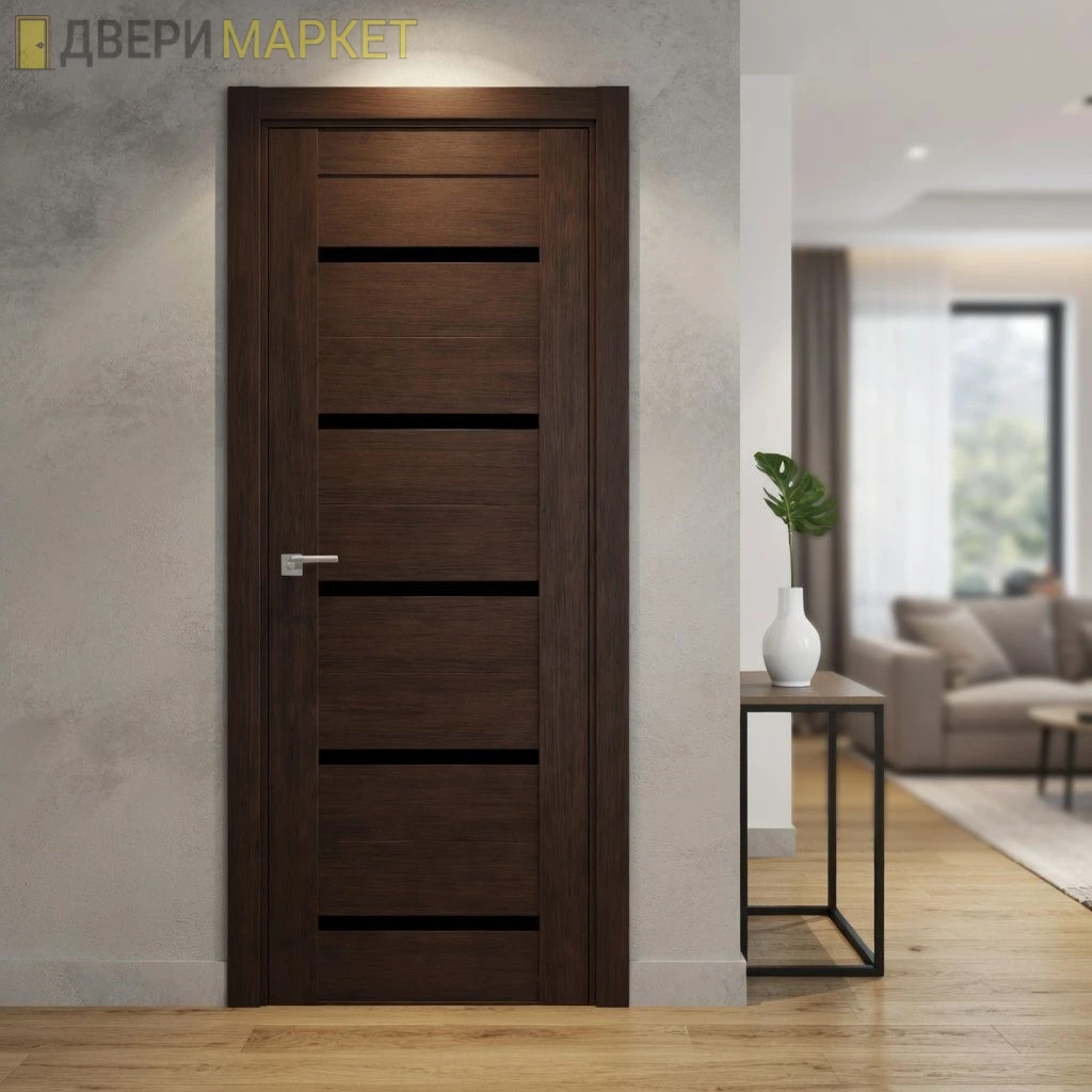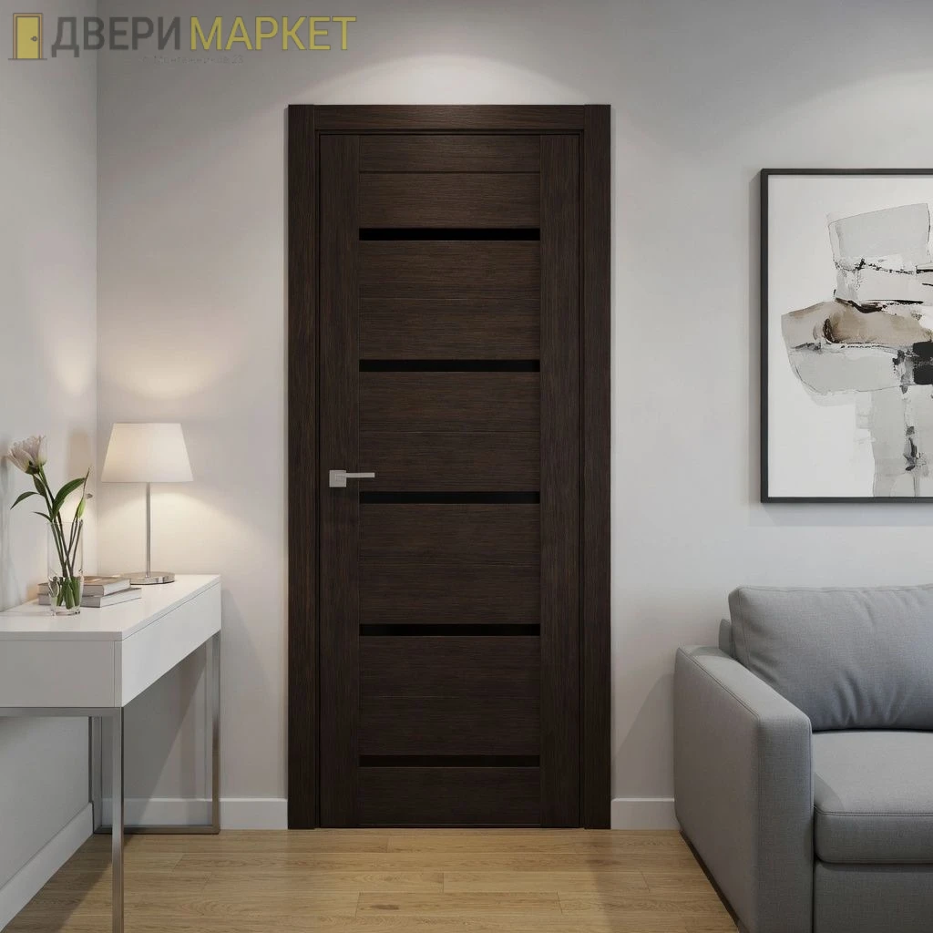 Межкомнатная дверь Vida-1 с покрытием из экошпона в цвете венге с черным стеклом – это прекрасное сочетание стиля и функциональности.