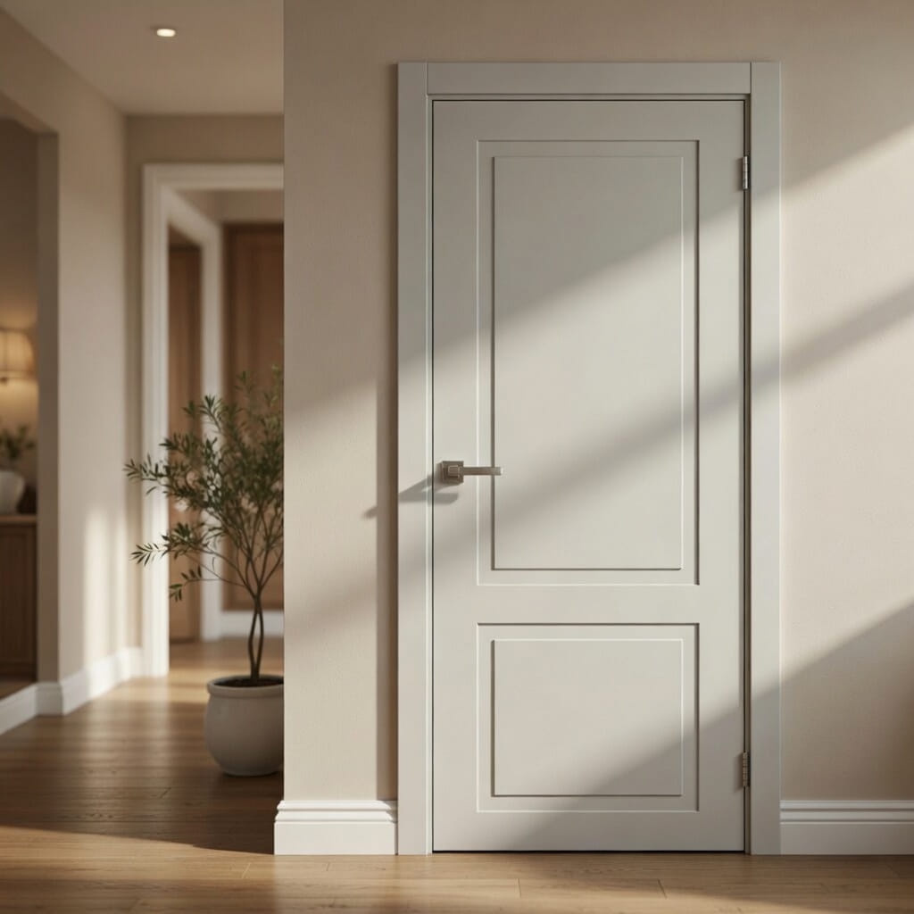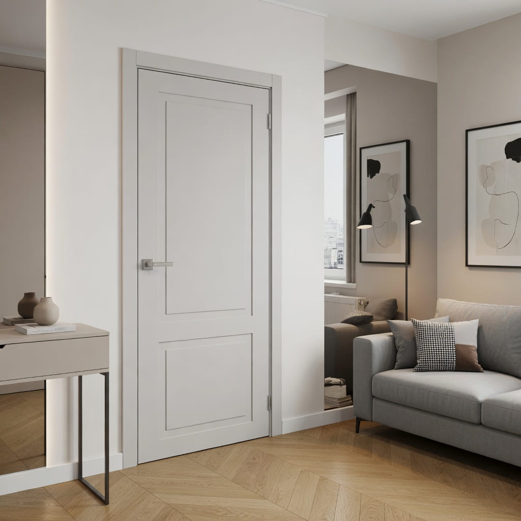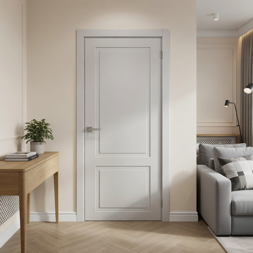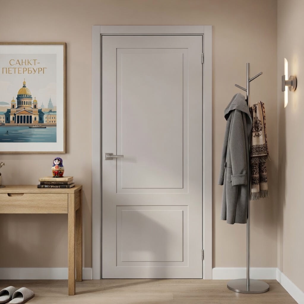 - Эстетичный внешний вид: Светло-серое матовое покрытие придает двери легкость и утонченность, гармонично вписываясь в современные интерьеры.
