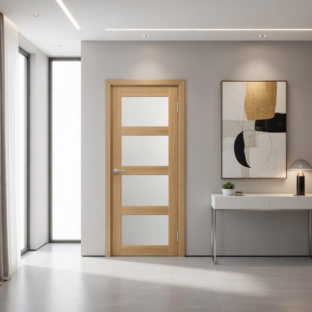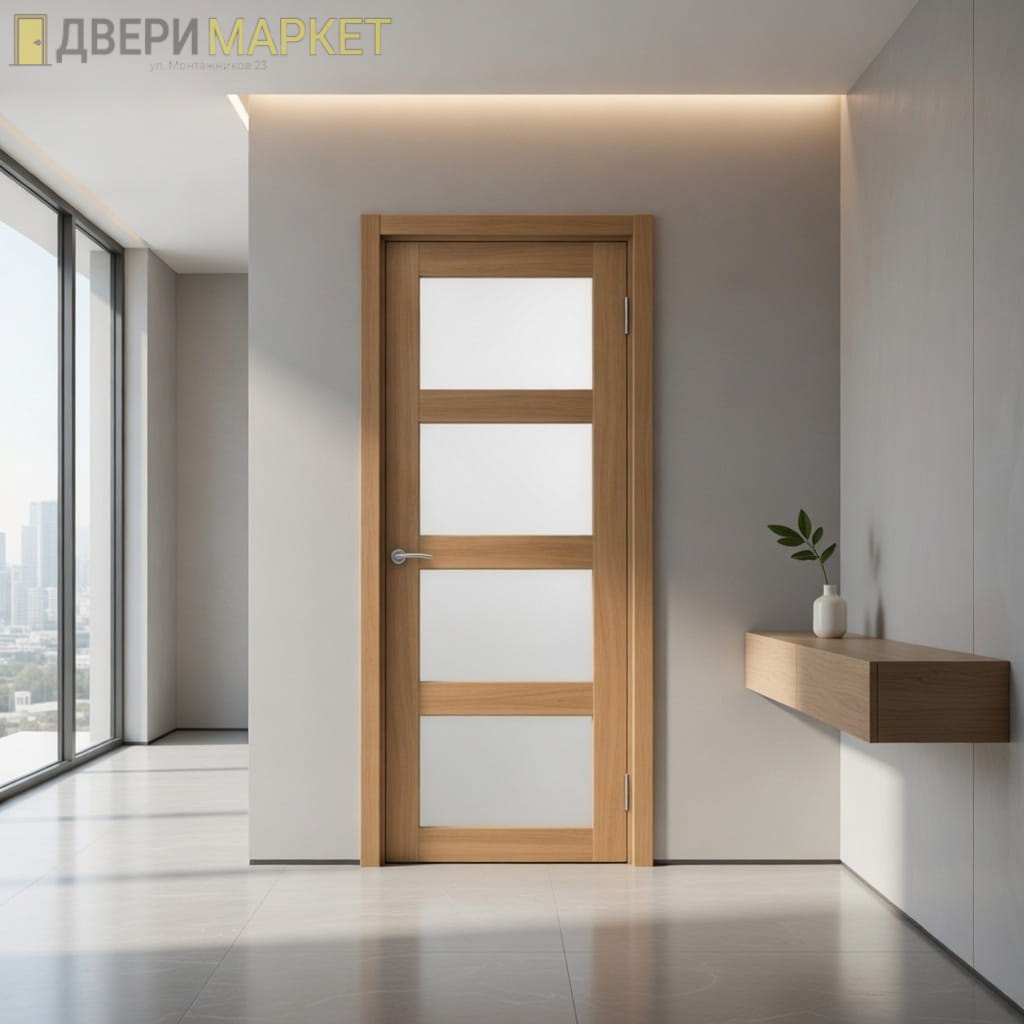 Влагостойкая дверь Zargo модель QUATRO со стеклом, цвет Песочный дуб